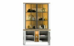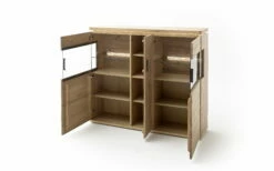 Highboard Barcelona In Balkeneiche Massiv / Eiche Bianco Furniert, Inklusive Oberboden-Beleuchtung