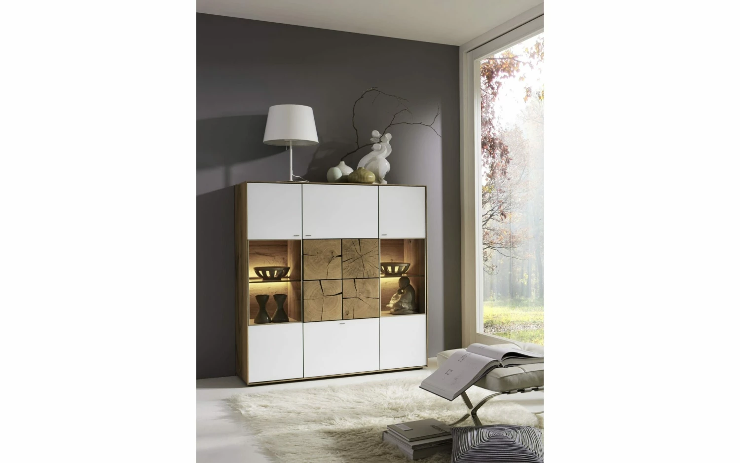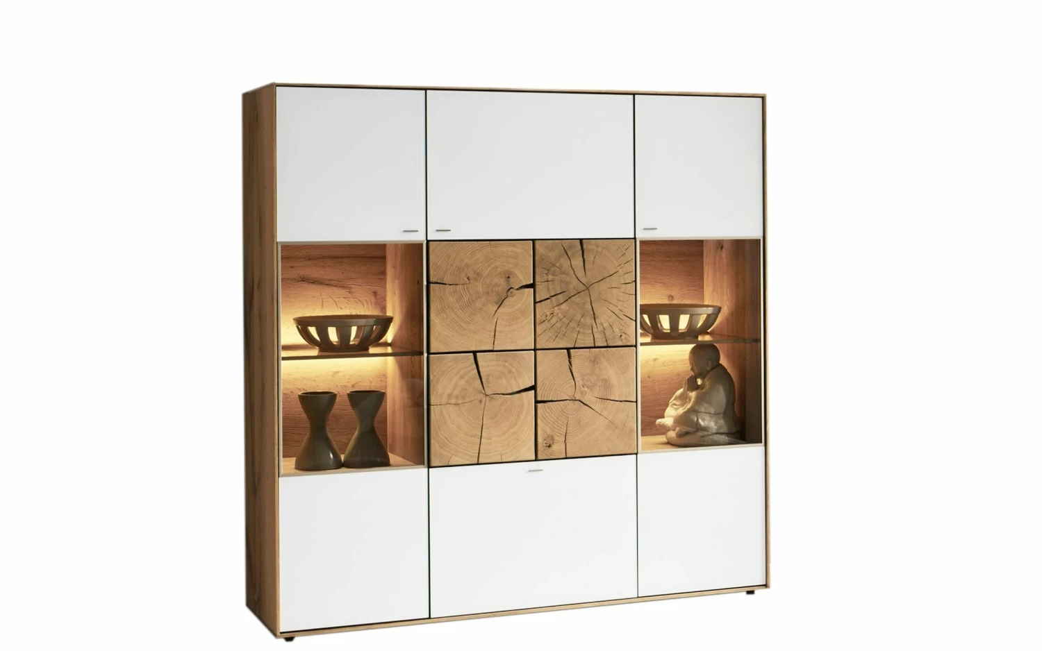 MONDO Wohnwand Samadi, Salzkammergut Alteiche Natur Furniert, Akzentfläche In Schiefergrau