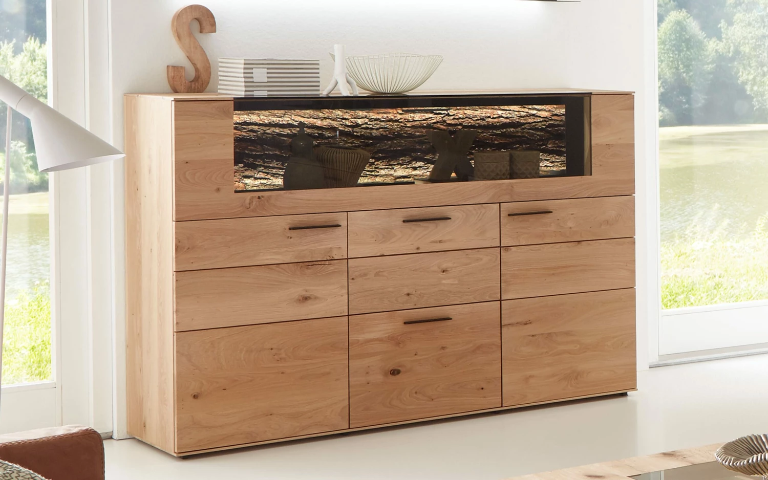 MONDO Wohnwand Samadi, Salzkammergut Alteiche Natur Furniert, Akzentfläche In Schiefergrau