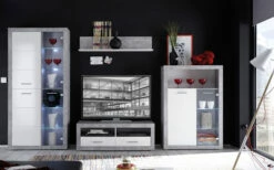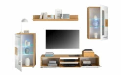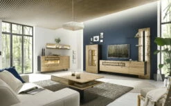 MONDO Wohnwand Samadi, Salzkammergut Alteiche Natur Furniert, Akzentfläche In Schiefergrau